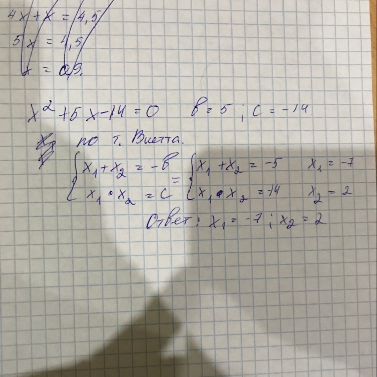 х2+5х-14=0(Если корней несколько запишите их в ответ в порядке возростания.