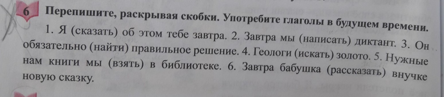 1.Скажу 2.Напишем 3.найдёт 4.искали 5.возьмём 6.расскажет