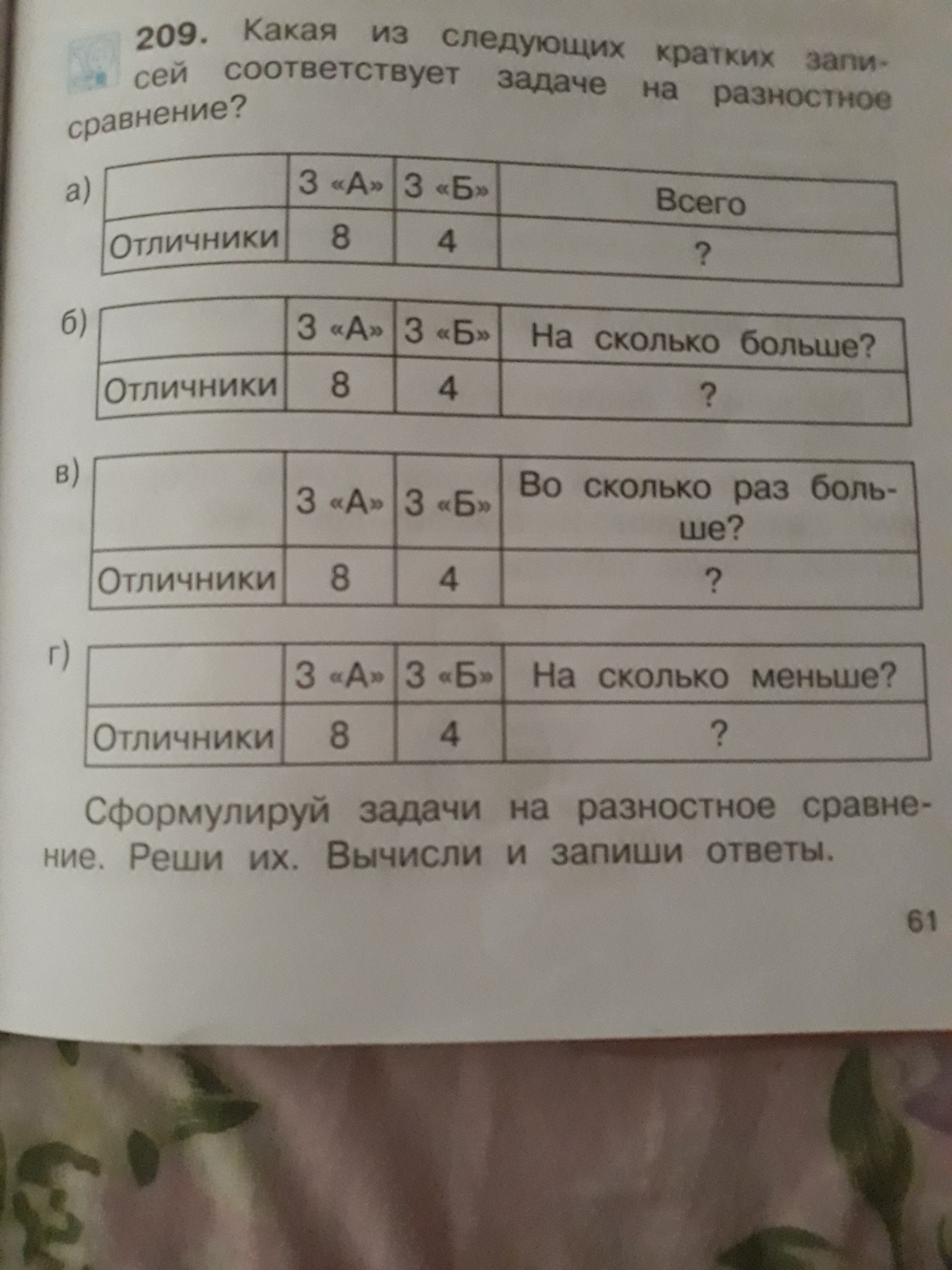 Какая из следующих кратких записей соответствует задаче на разностное сравнение? пожалуйста