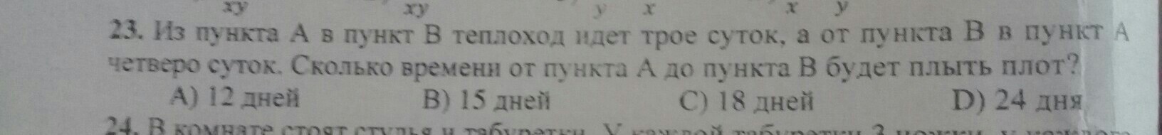 плот будет плыть ровно 18 дней 1 4×3=12 2 12+6=18