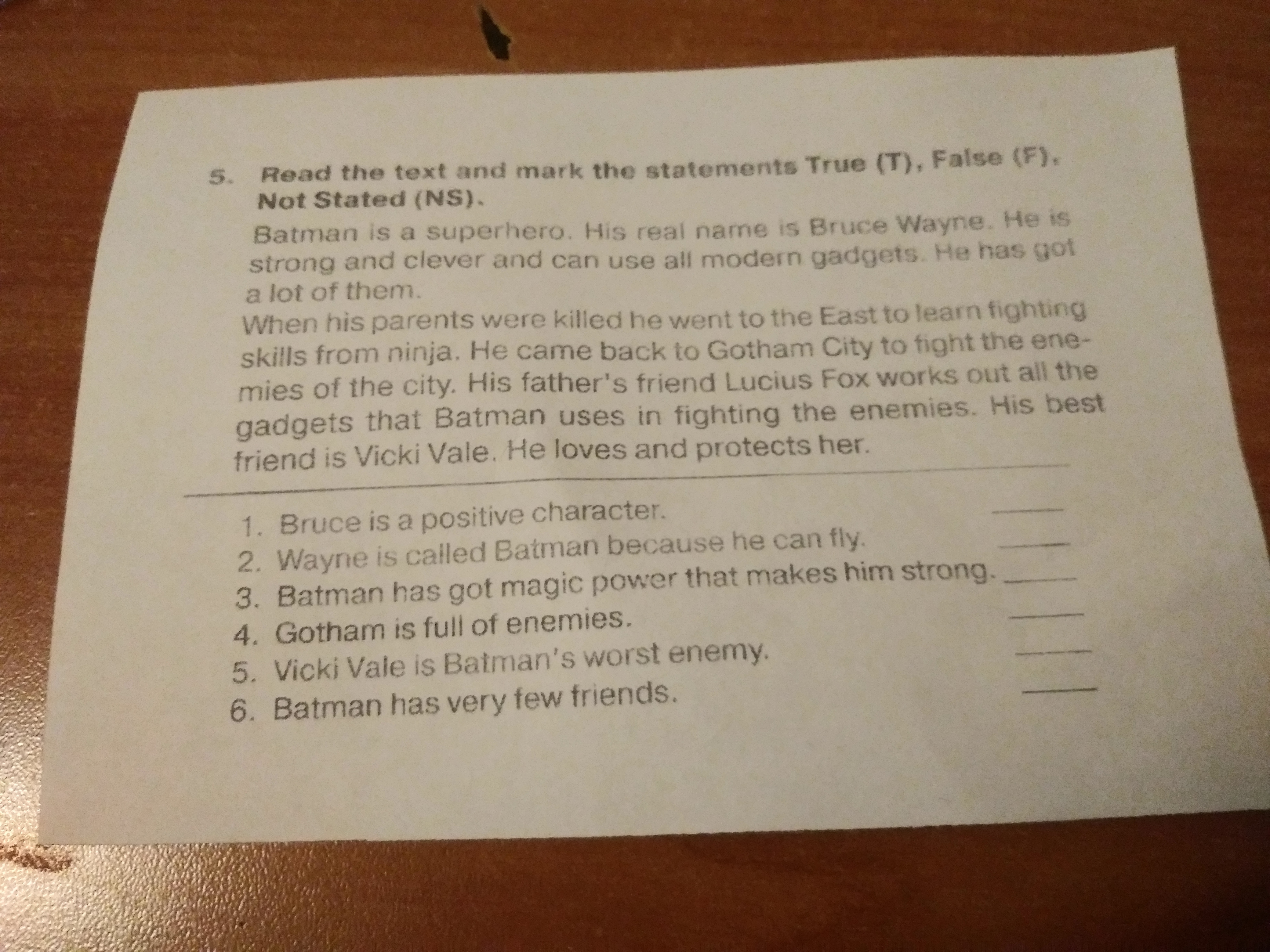 1 - NS. 2 - F. 3 - F. 4 - T. 5 - F. 6 - T.