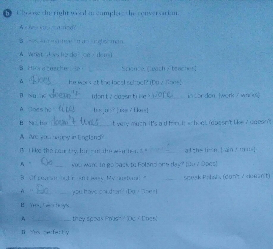 B: he teaches Scienca.....