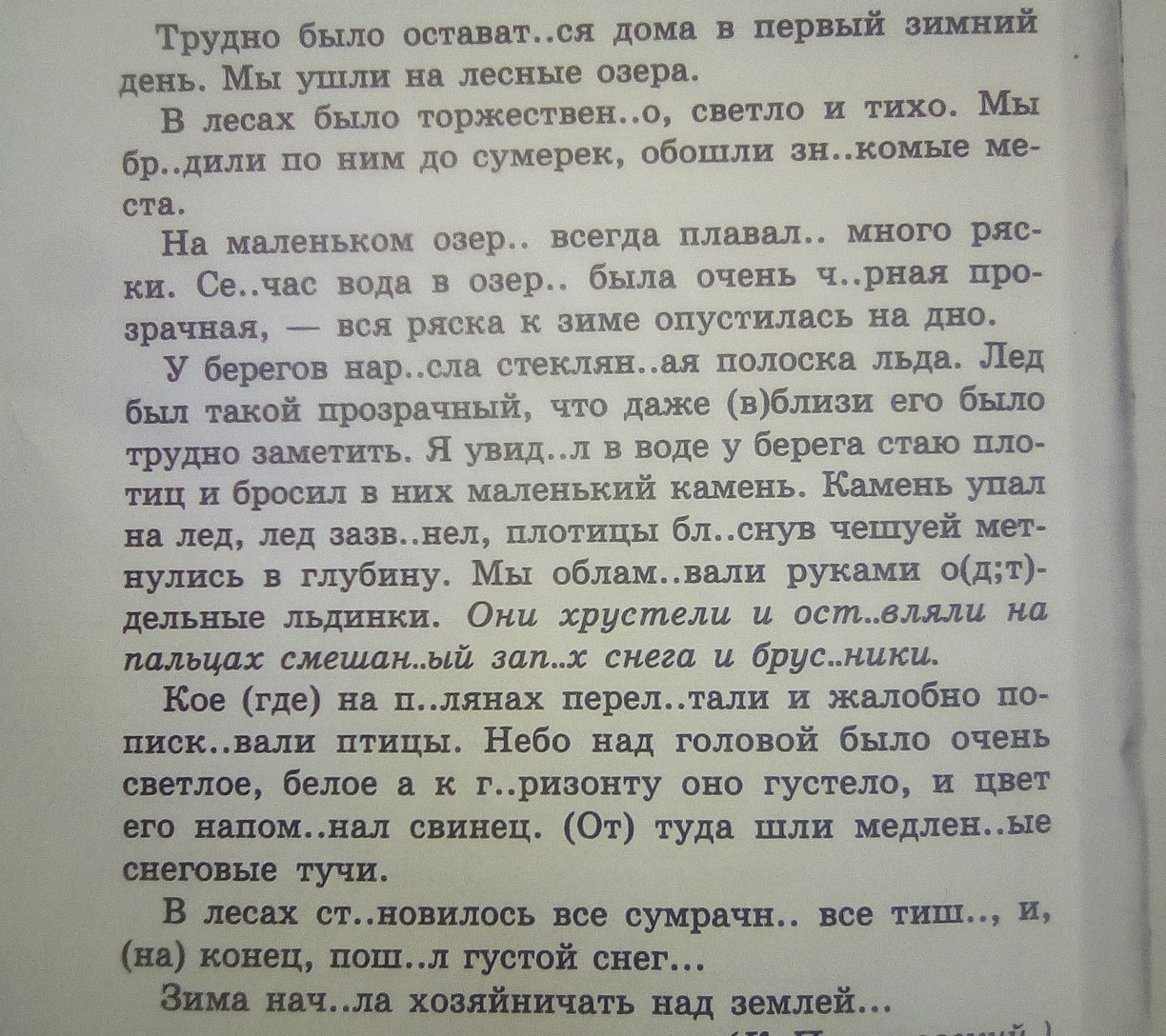1.берегов,2.плотицы,3.льдинки,4.руками.
