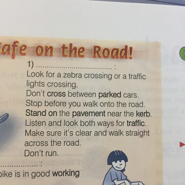 Don’t cross between parked cars Stand on the pevement near the keen. Listen and look both ways for traffic