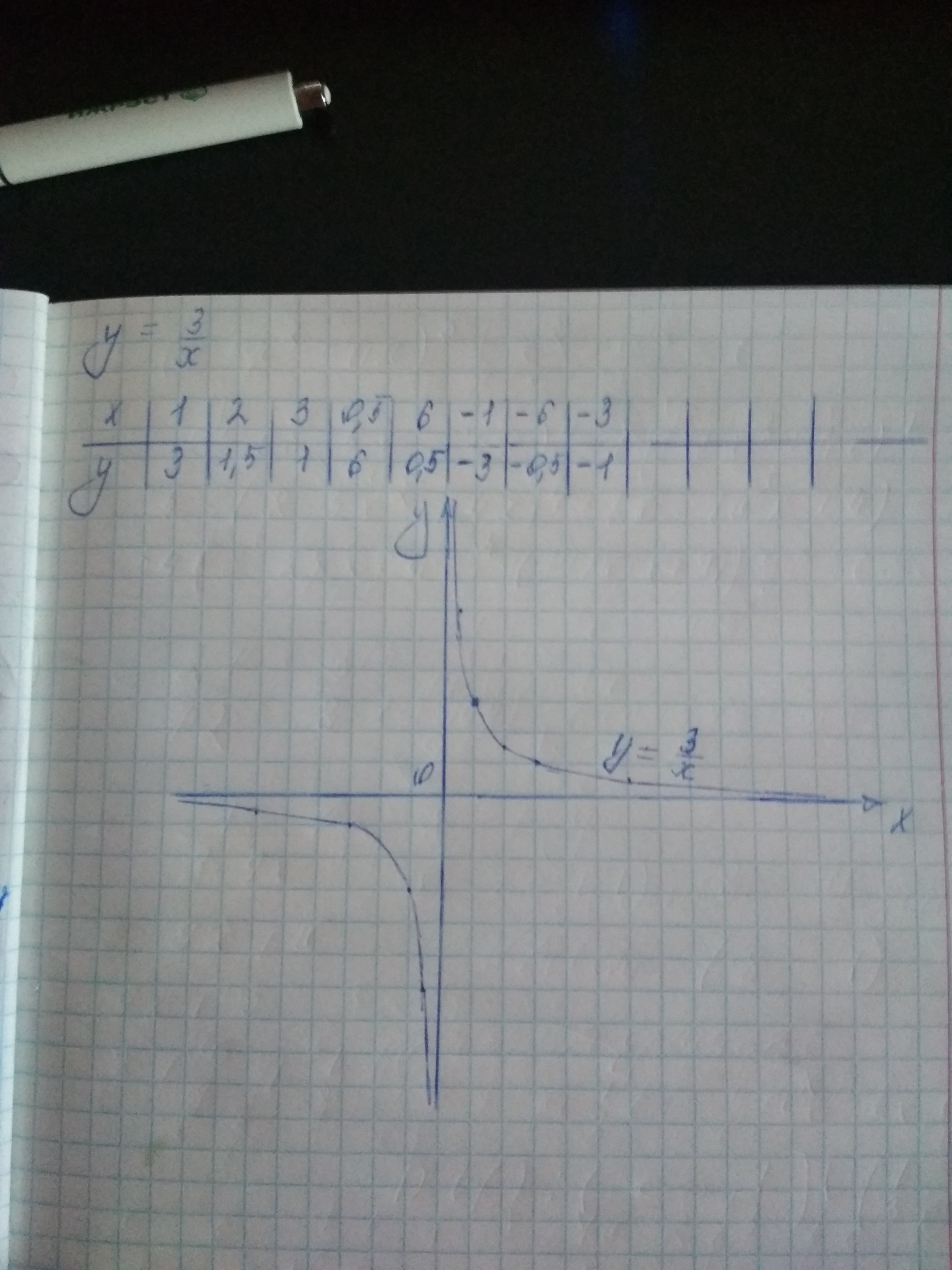 Постройки график функции (гипербола) и сделать таблицу x и y. Фотка будет сейчас, именно какой формулой.