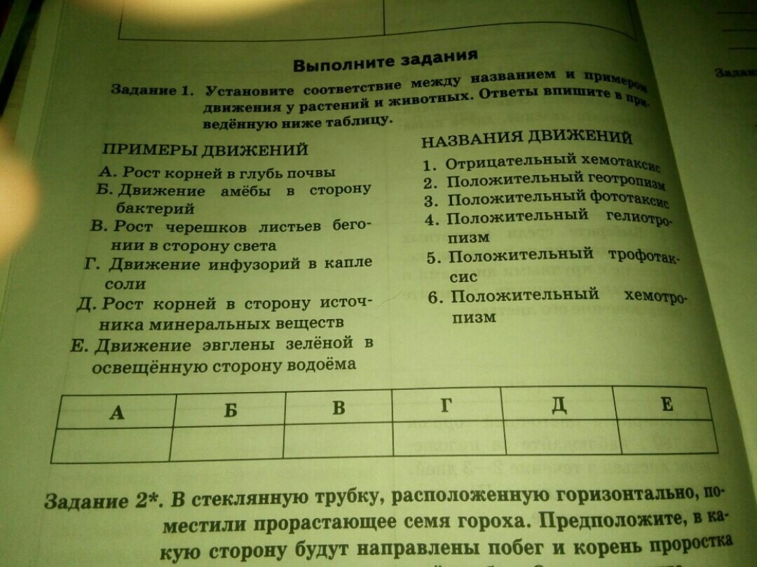 Е. Движение эвглены зелёной в освещённую сторону водоёма 6.Положительный хемотропизм