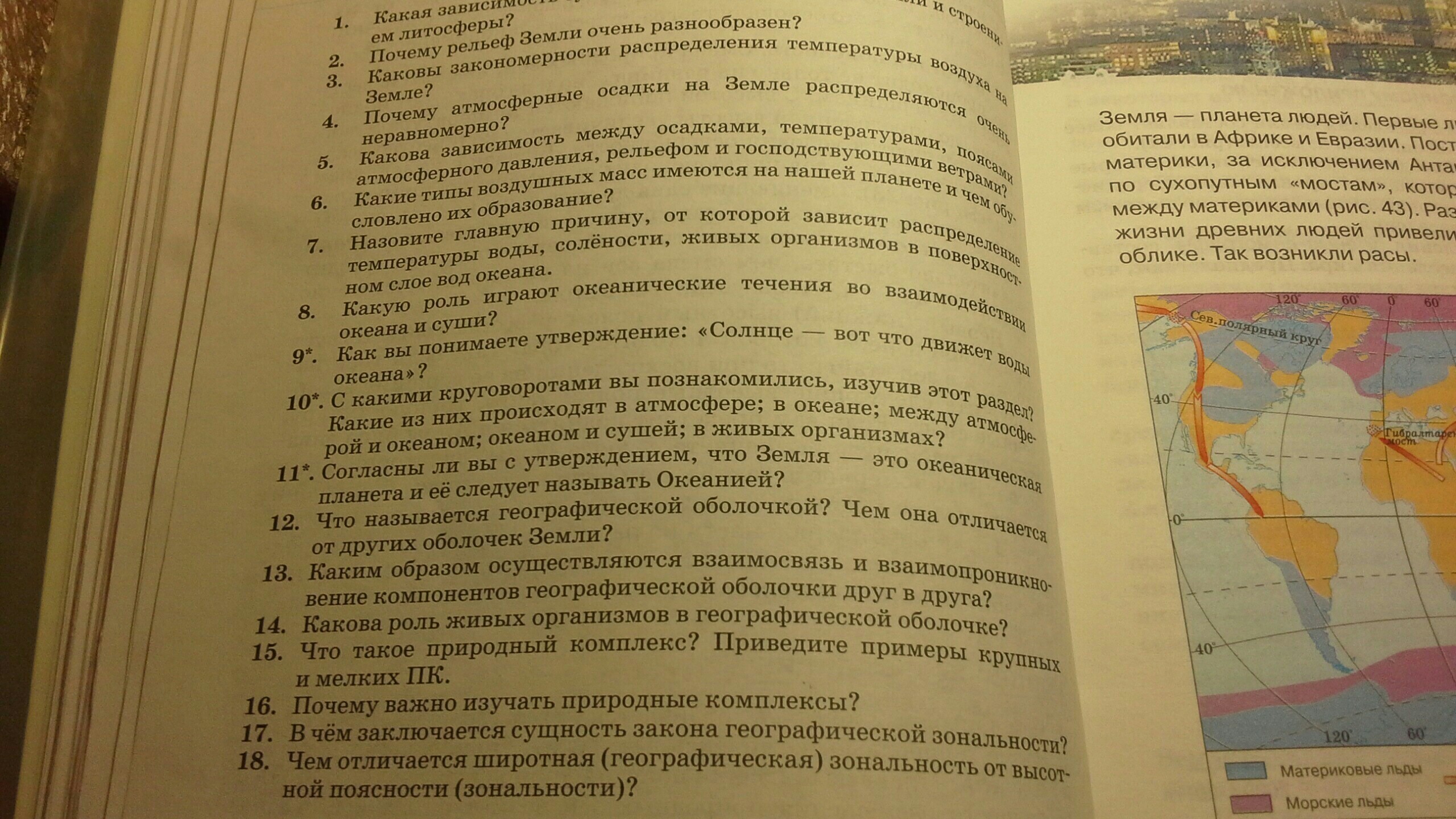 В атмосфере-круговорот воды и воздушных масс.В океане-круговорот воды,течений и живых организмов.Между атмосферой и океаном круговорот воды.Между океаном и сушей-круговорот воздушных течений.В живых организмах-круговорот веществ и энергии