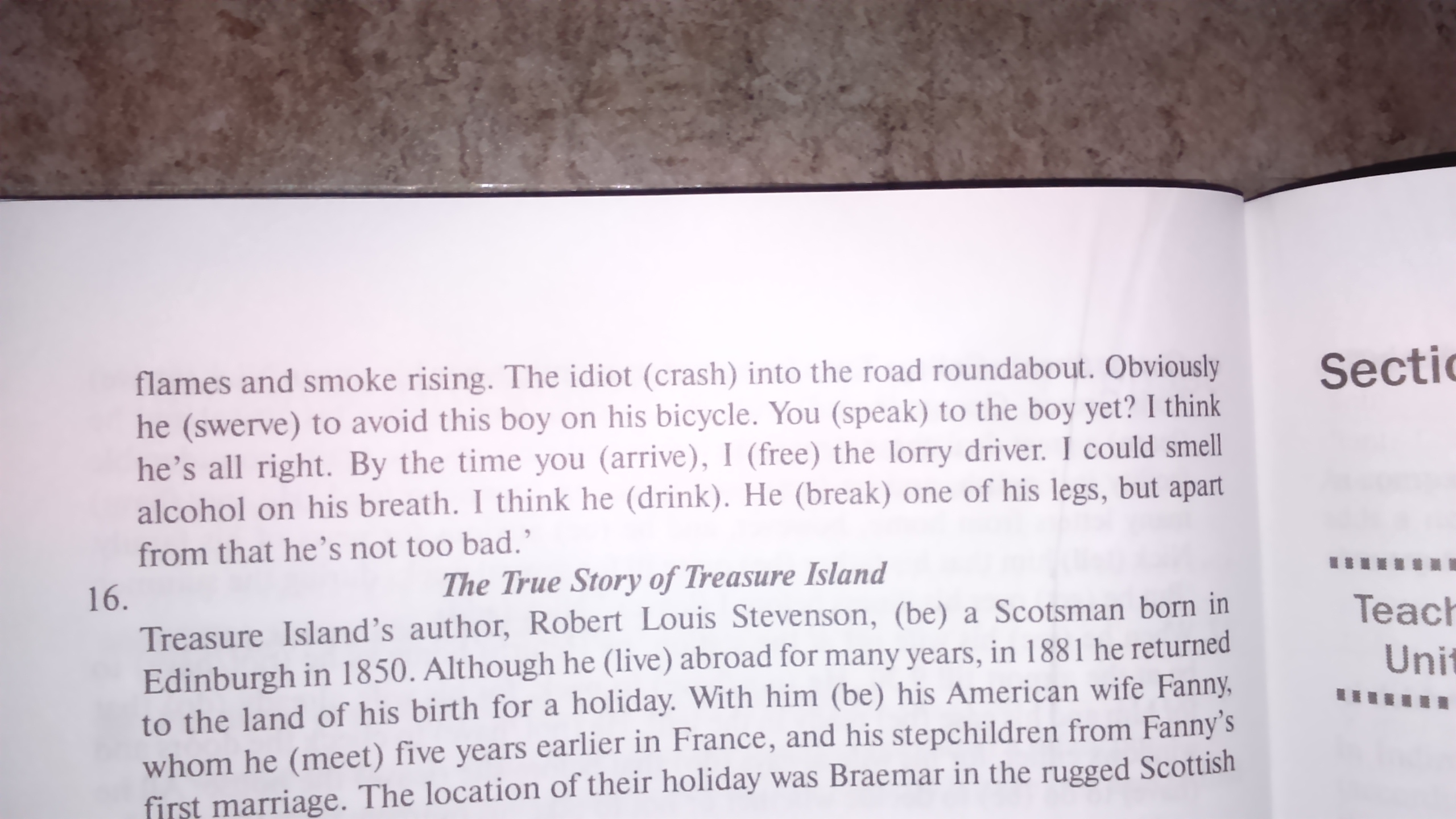 Crashed, swerved, spoke, arrived, freed, drank, broke.