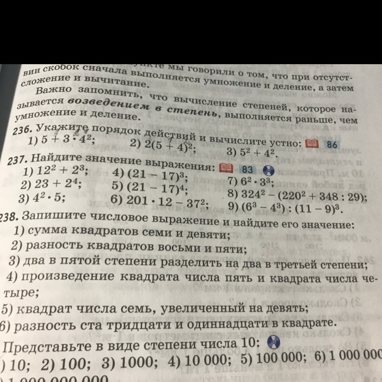 1) 6³ = 6 × 6 × 6 = 216;
