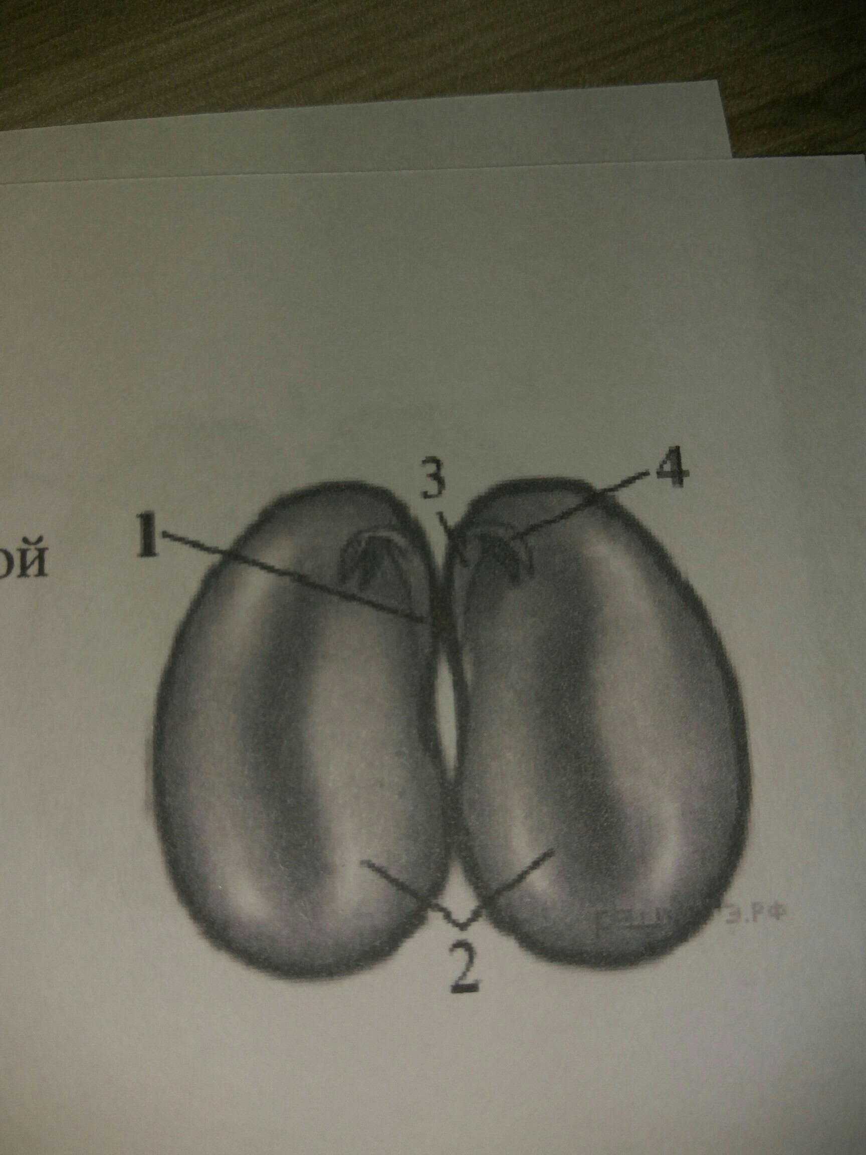 какой цифрой обозначена часть семени фасоли, в которой сосредоточены питательные вещества