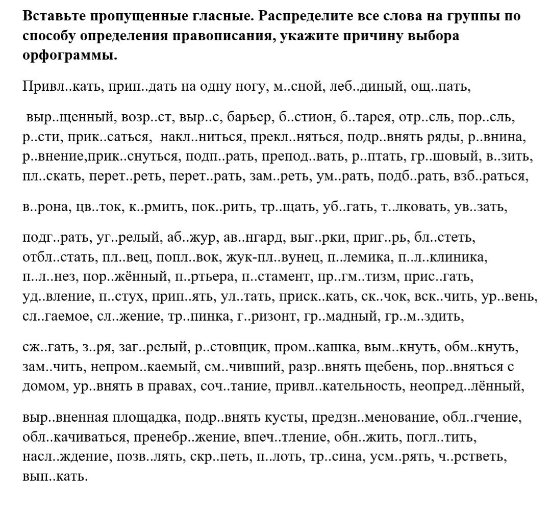 вставьте пропущенные гласные, распределите все слова на группы. ПОМОГИТЕ )