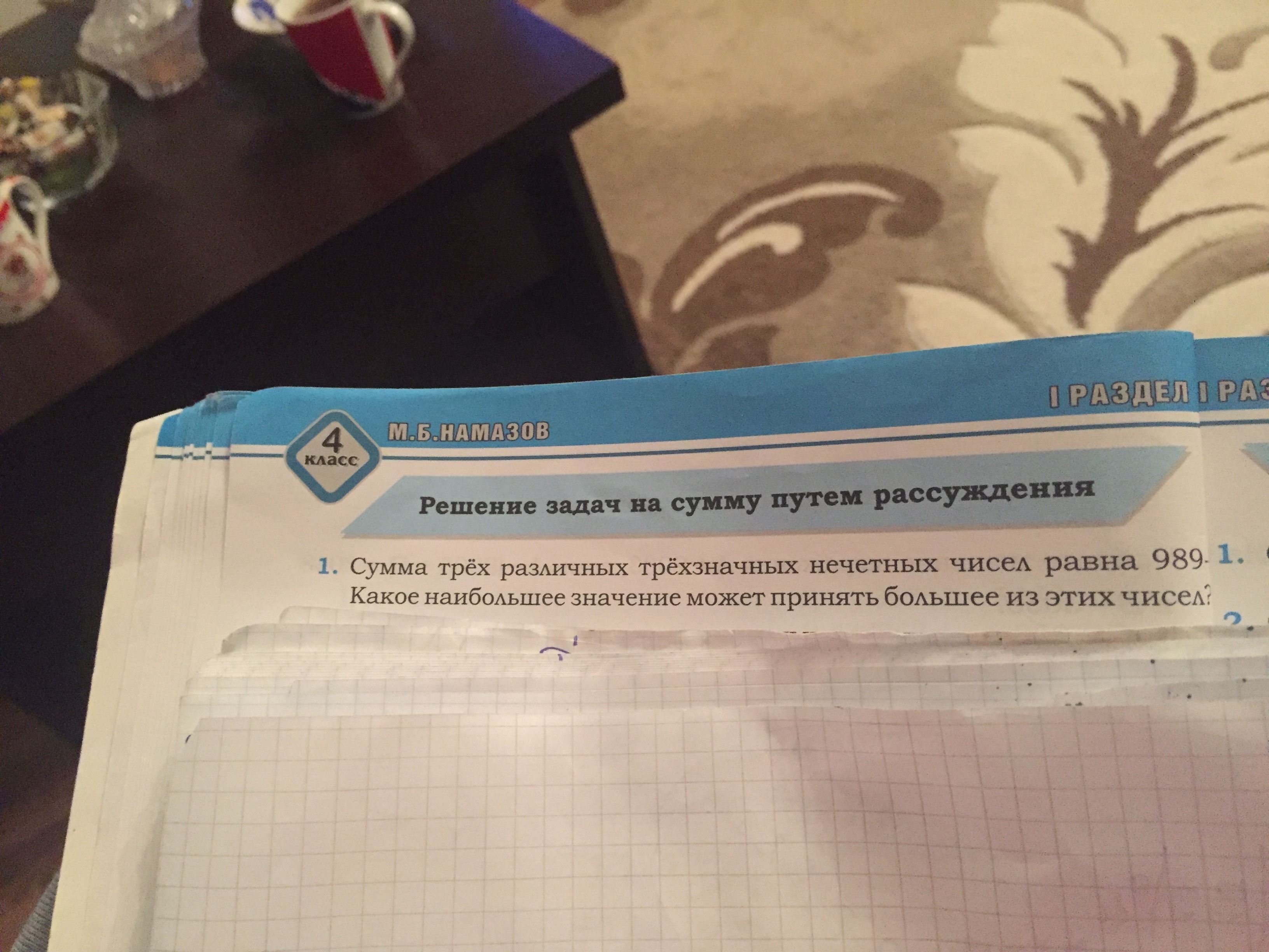 Если нужно узнать наибольшее из этих чисел, то нужно вычесть из известного числа два наименьших трехзначных числа не равных друг другу. 989 - 101 - 103 = 785
