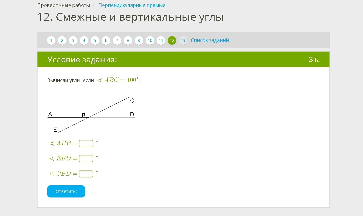 ∠АВЕ = 180° - ∠АВС = 180° - 100° = 80° (сумма смежных углов равна 180°)