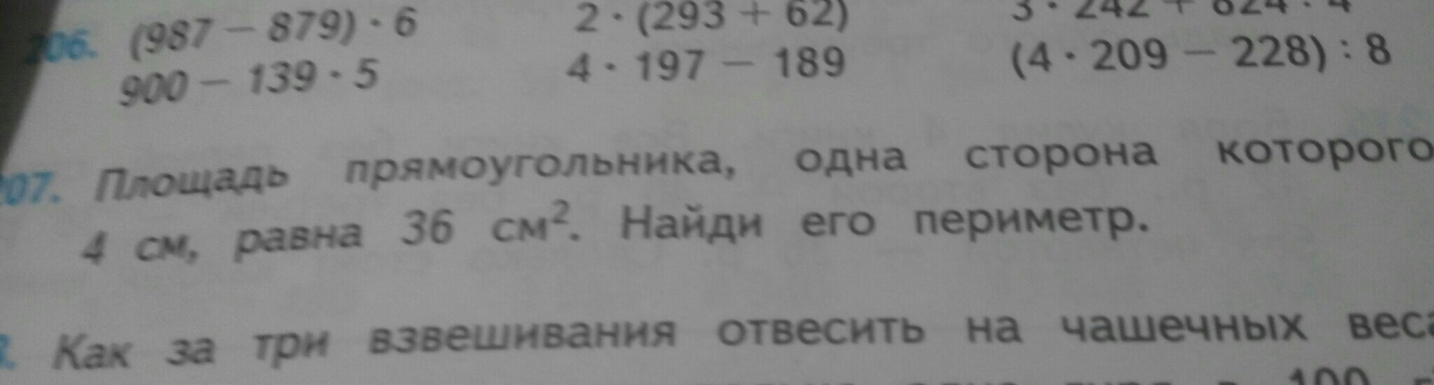 номер 207 площадь прямоугольника одна сторона которого 4см равна 36см2 найди его периметр