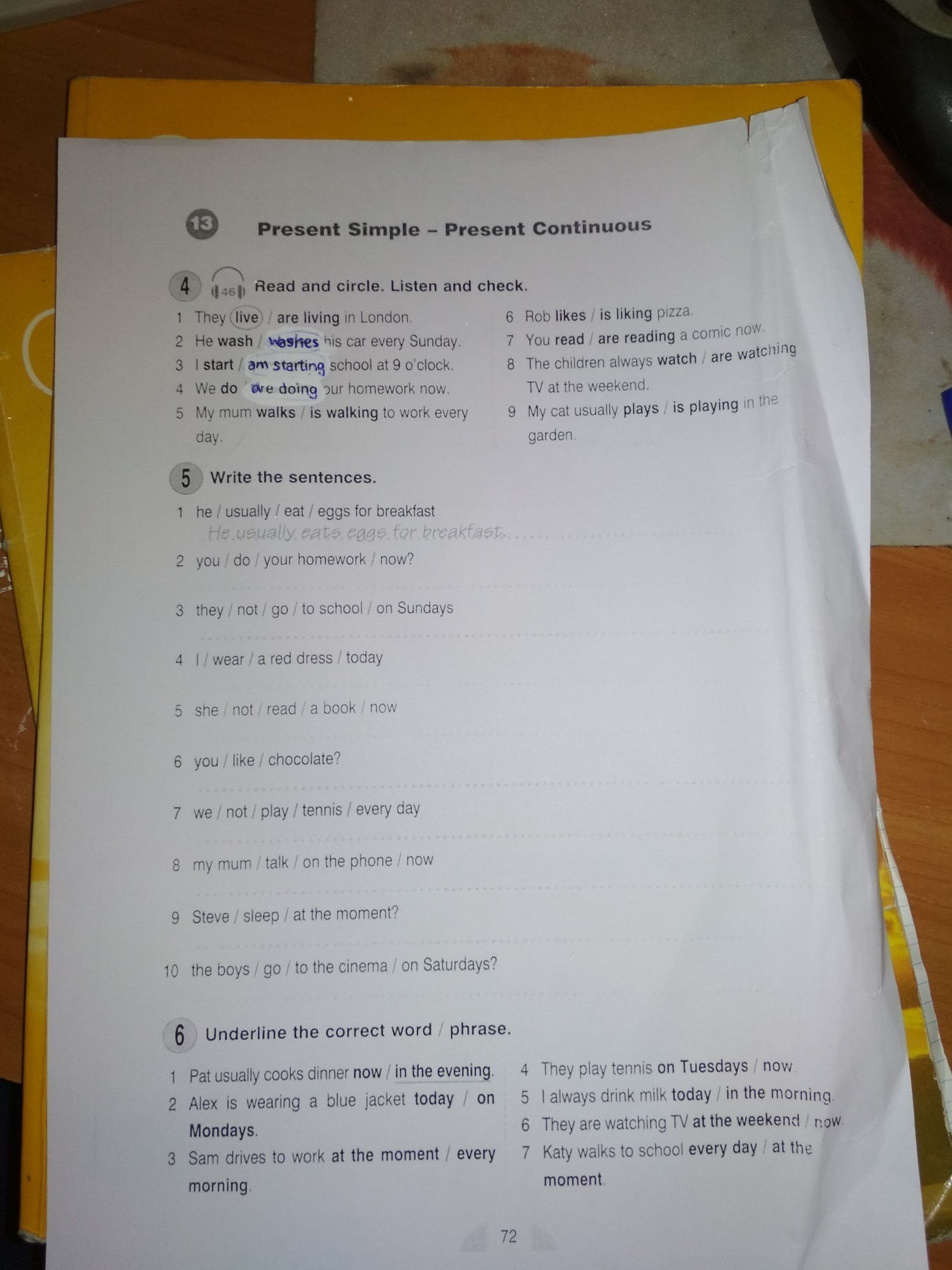 7. We don't play tennis every day 8. My mum is talkingon the phone now. 9. Is Steve sleeping now? 10/ Do the boys go to the cinema on Saturdays?