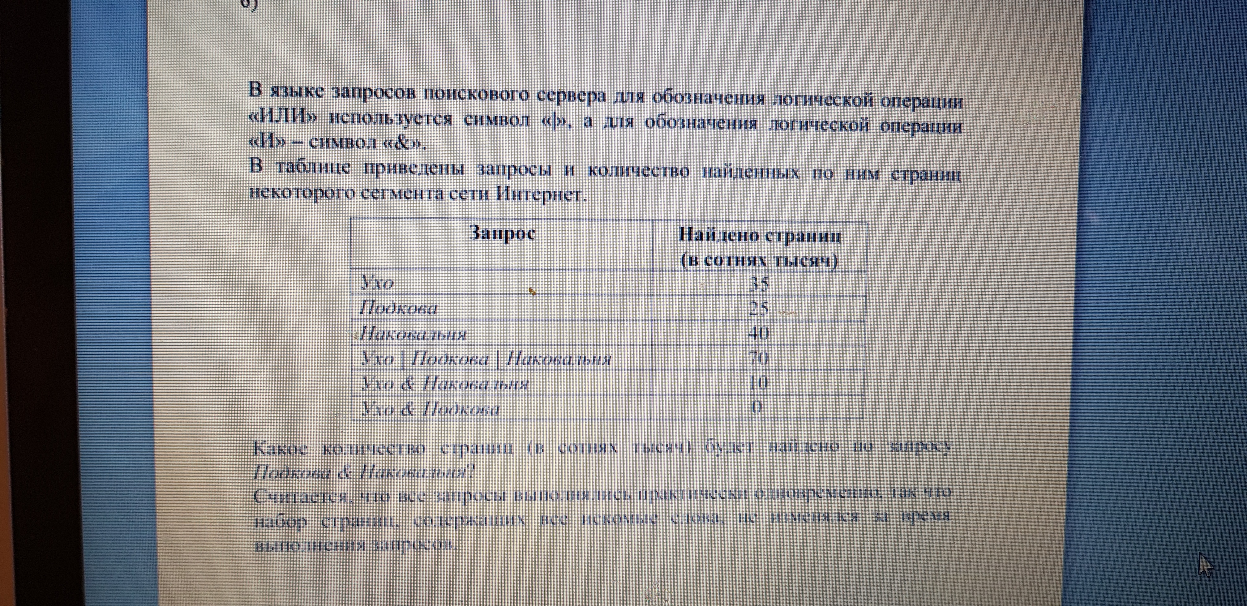 Значит количество запросов, содержащих Н & П = (Н' | П) - Н'' - П' = 35 - 5 - 10 = 20