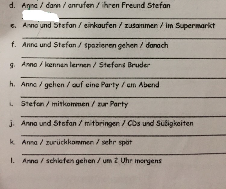 e. Anna und Stefan kaufen im Supermarkt zusammen ein.
