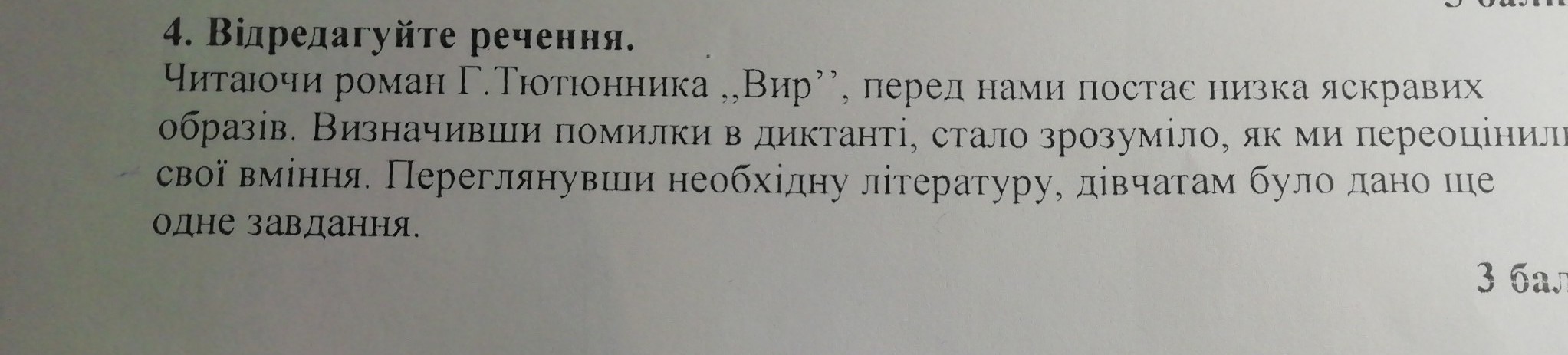 Читаючи роман Г.Тютюнника "Вир", перед нами постає декілька яскравих образів. Визначивши помилки в диктанті, ми зрозуміли наскільки переоцінили свої вміння. Переглянувши необхідну літературу, дівчата отримали ще одне завдання.