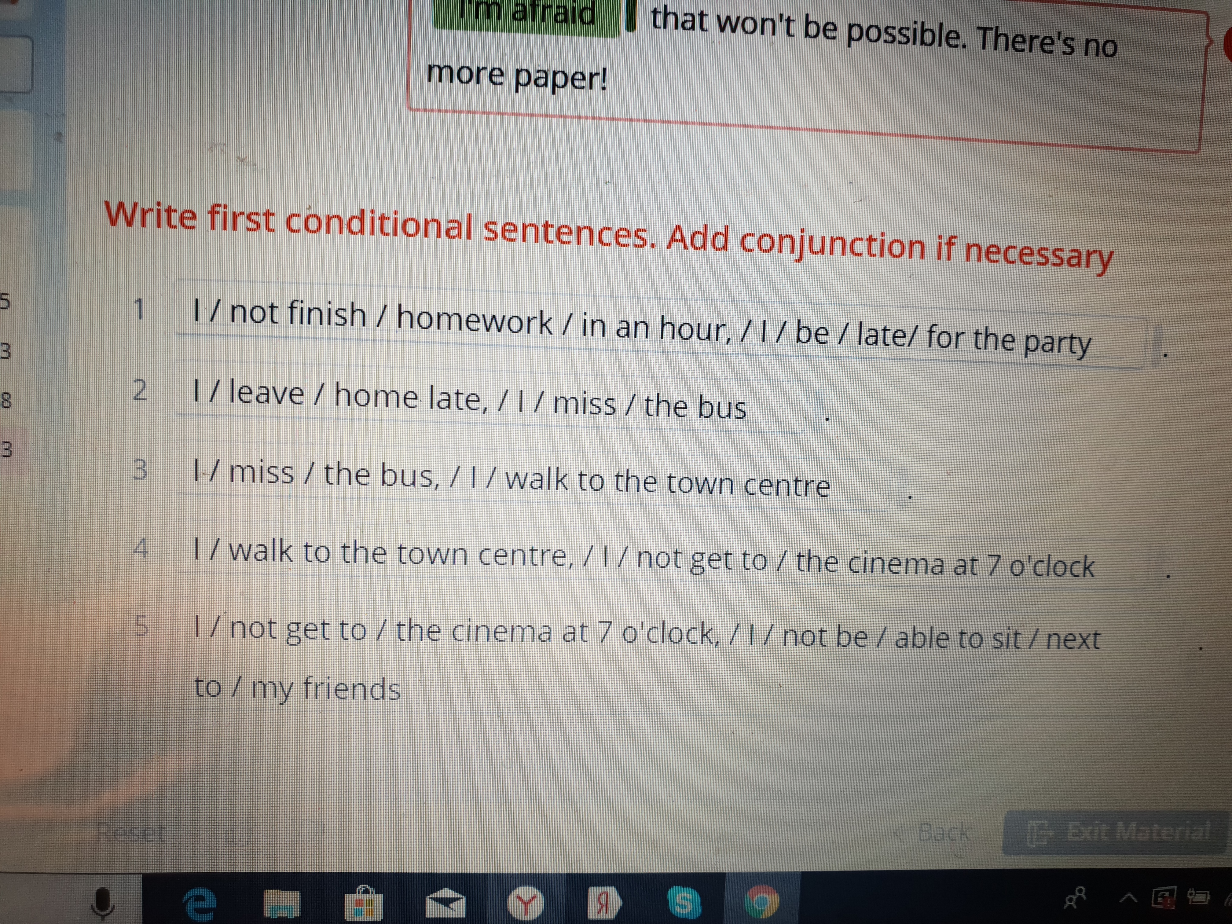 4 if I walk to the town centre, I won’t get to the cinema at 7 o’clock.