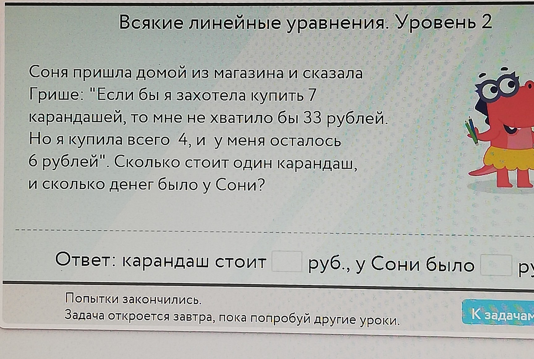 Пусть один карандаш стоит х рублей, составим уравнение: