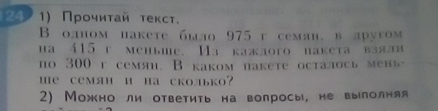 2) 975-300=575 (г.)-осталось в первом покете грамм после того как из пакета выняли 300 грамм.