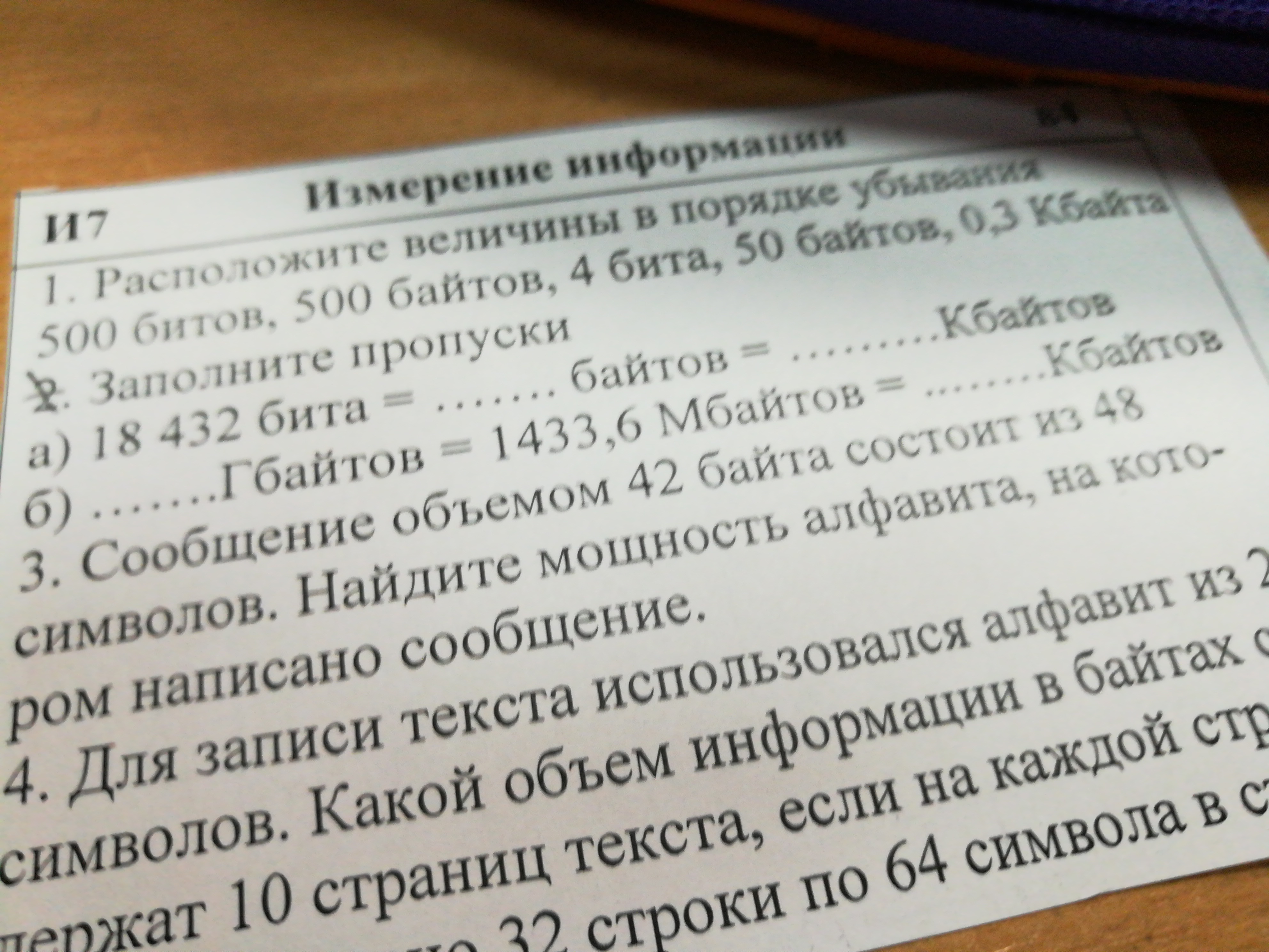 1) 4 бита, 500 битов, 50 байтов, 0,3 кБайта, 500 байтов