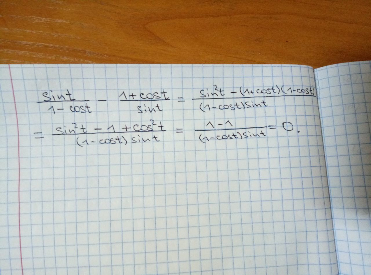 1 - (sin^2(3t) + cos^(3t)) = 1 - 1 = 0