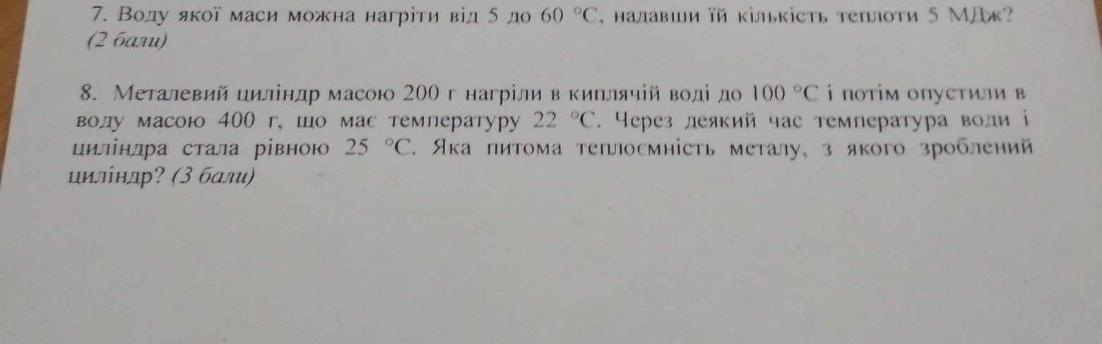 c1=c2*m2*(to-t2)/(m1*(t1-to))=4200*0.4*(25-22)/(0.2*(100-25))=336 Дж/(кг*С)