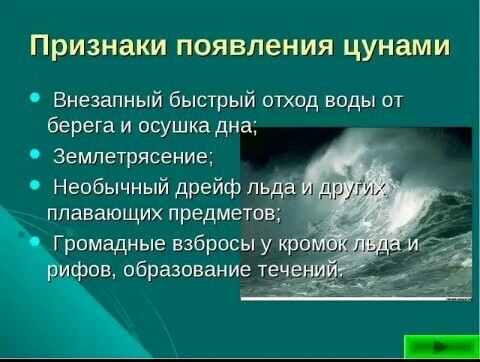 Длинные и высокие волны,порождаемые мощным воздействием на всю толщу в океане или в другом водоёме