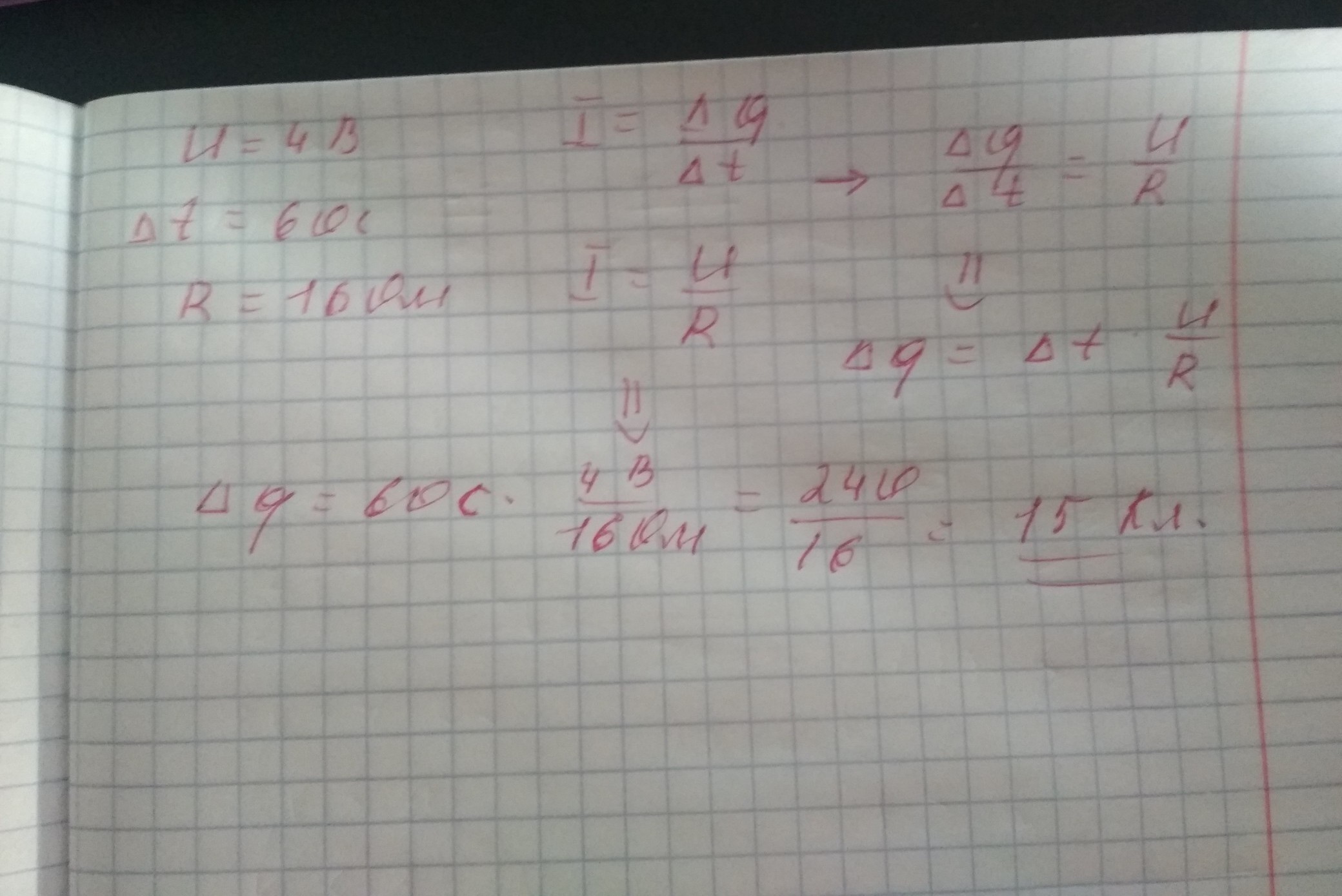 Электрическая лампа накаливания работает под напряжением 4В.Визначте заряд, который за 1 мин проходит через поперечное сечение спиральной лампы, если сопротивление спиали 16 ом.