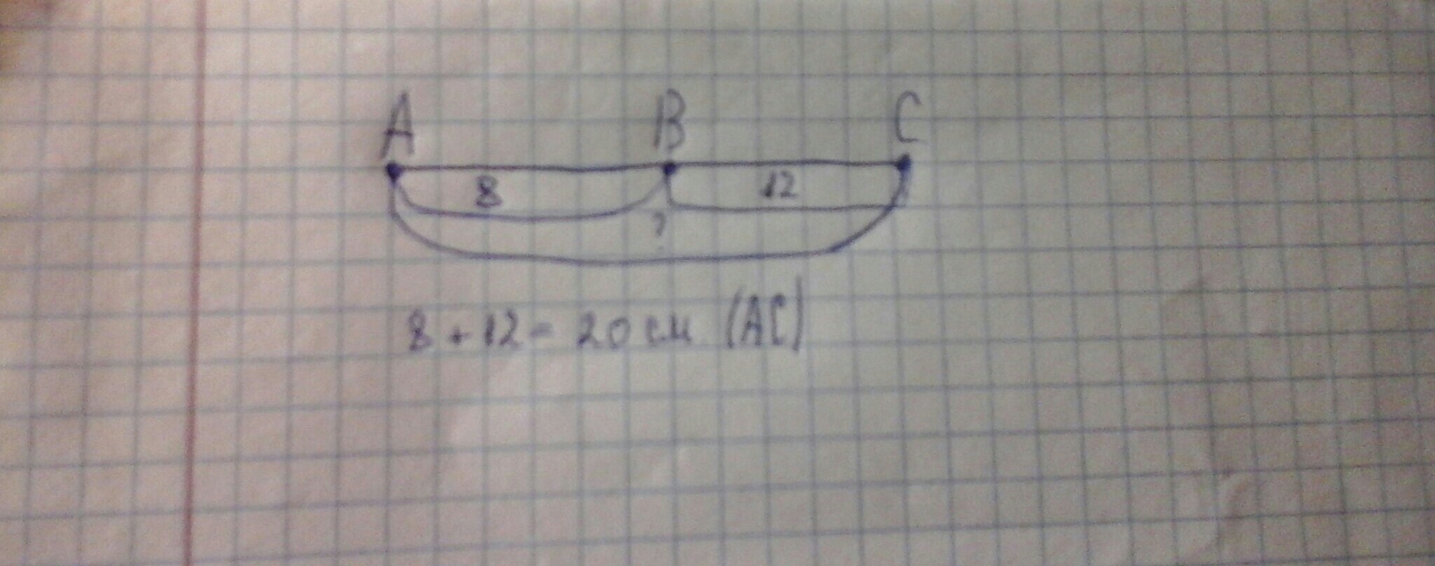 точки A B и C расположены на одной прямой причём AB равно 8 см BC равно 12 смКакой может быть длина отрезка AC