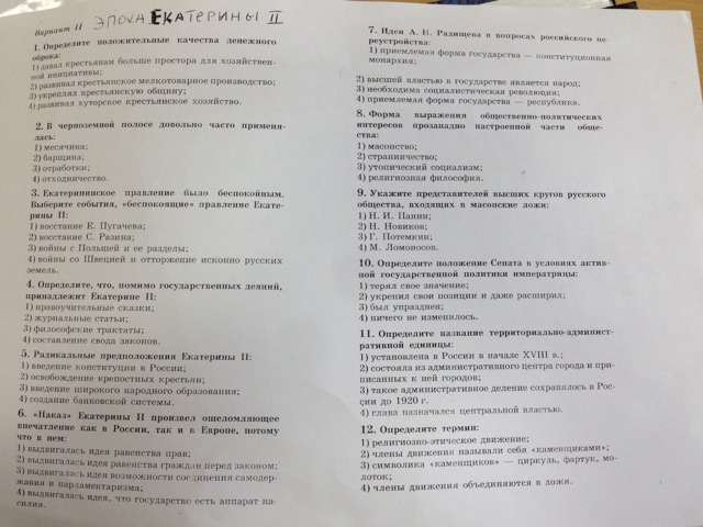 Решите пожалуйста 12 заданий. Эпоха Екатерины 2