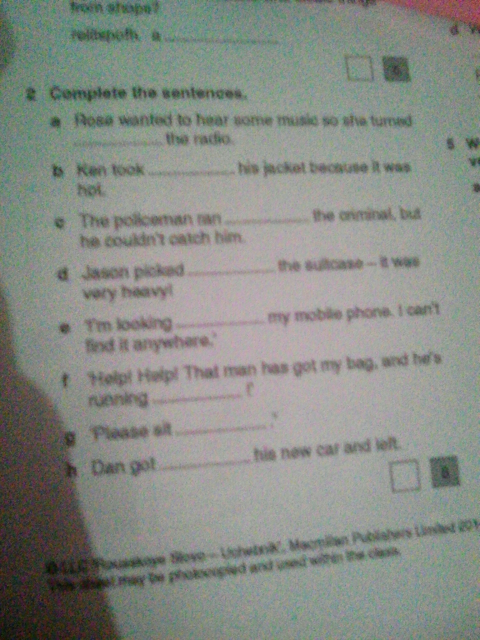 a. on b. off c. after d. up e. for f. off g. down h. off