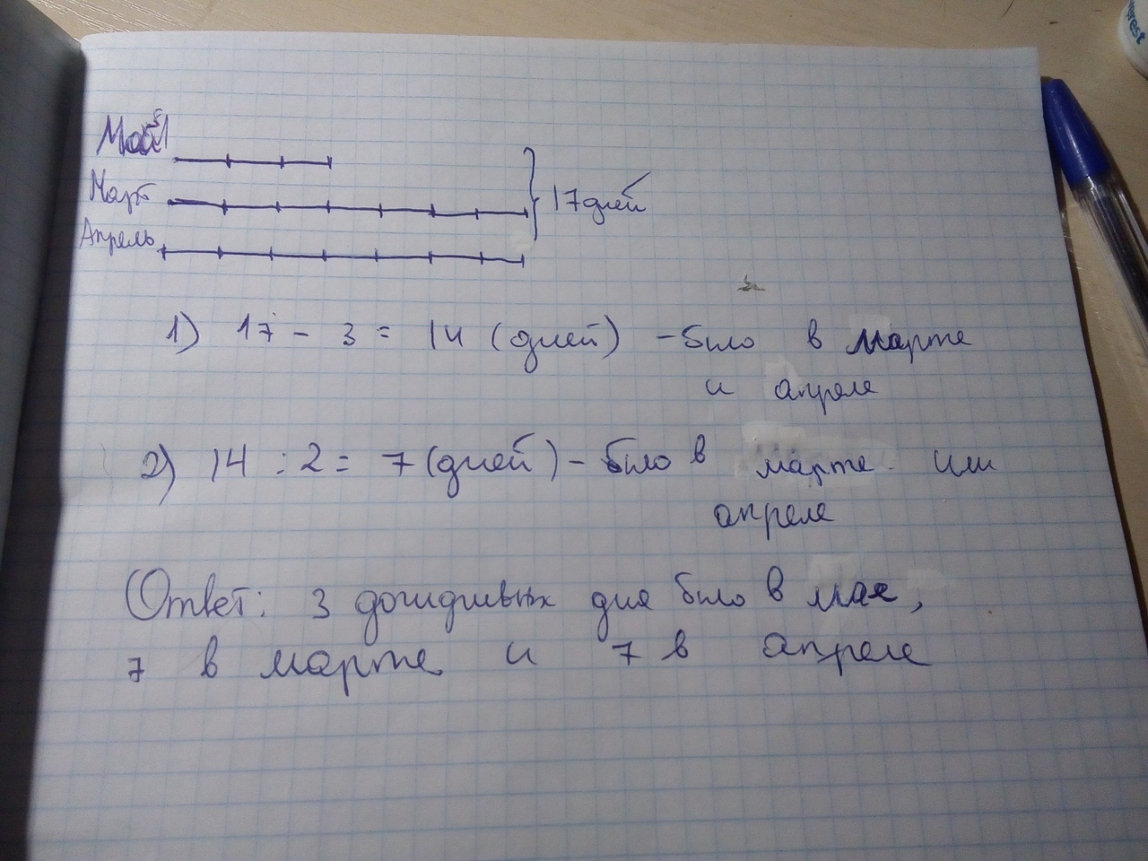 Честно не знаю, как здесь обойтись без деления. Я начертила схему, в принципе по ней видно, что по 7 дней приходится на март/апрель.