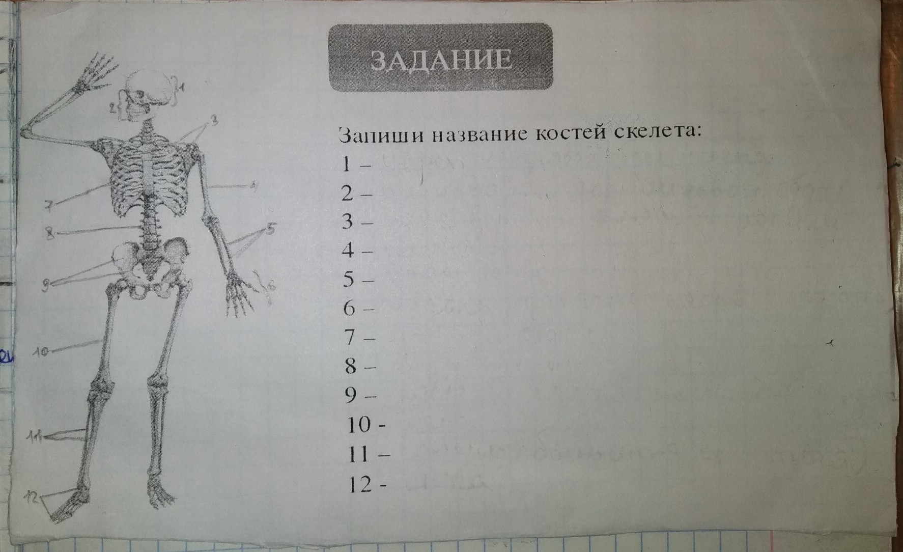 1- череп,9-таз, 6-кисть,8- позвоночник,