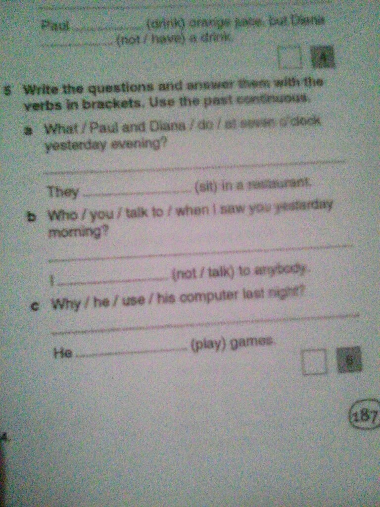 a. what were paul and diana doing at seven o`clock yesterday evening?