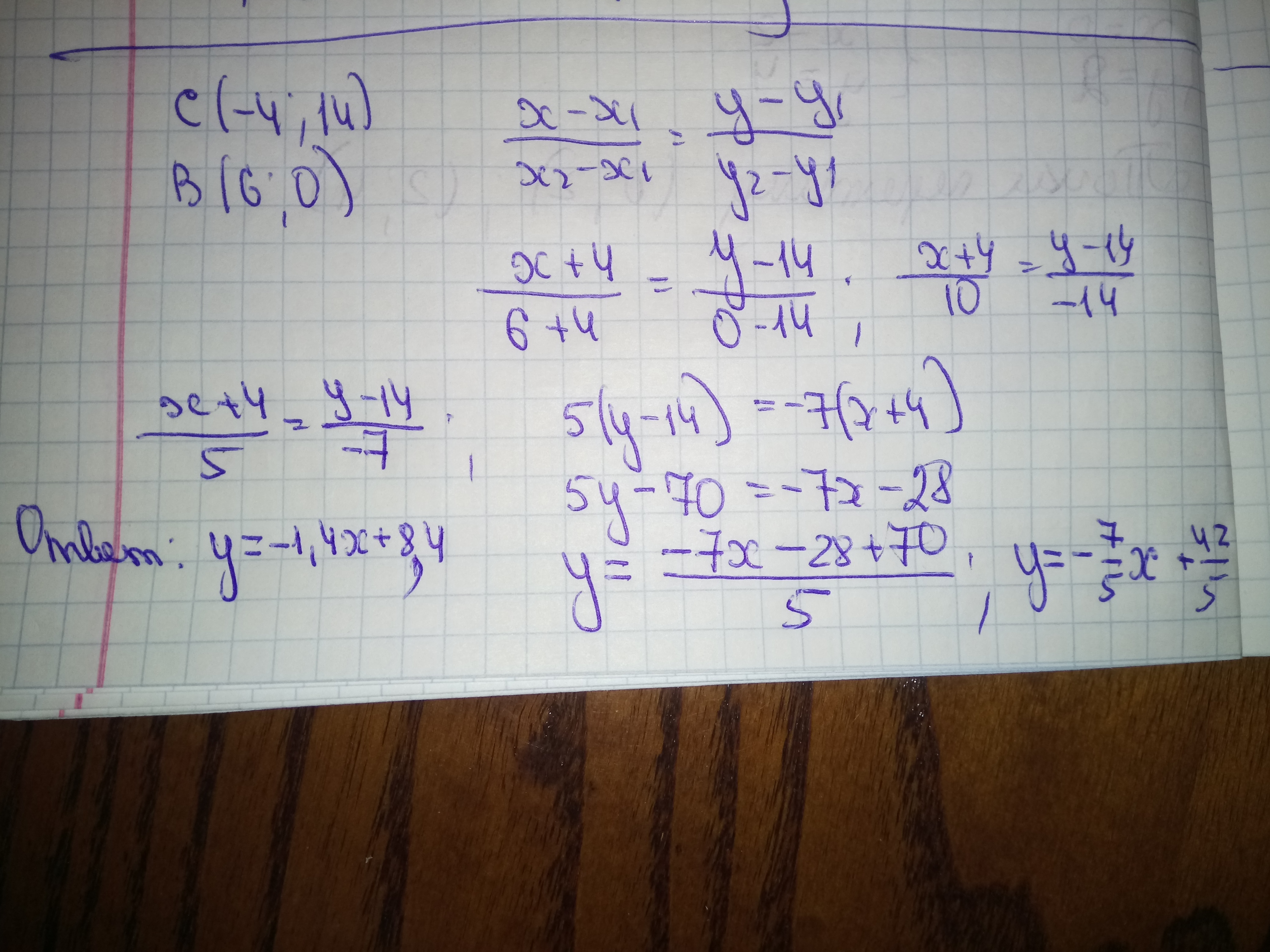 График линейной функции проходит через точки С(-4;14) и В(6;0). Задайте формулой эту функцию и постройте график.