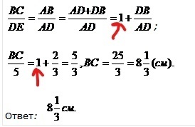 спасибо большое, просто на других сайтах было написано BC/DE= AB/AD= 1+DB/AD