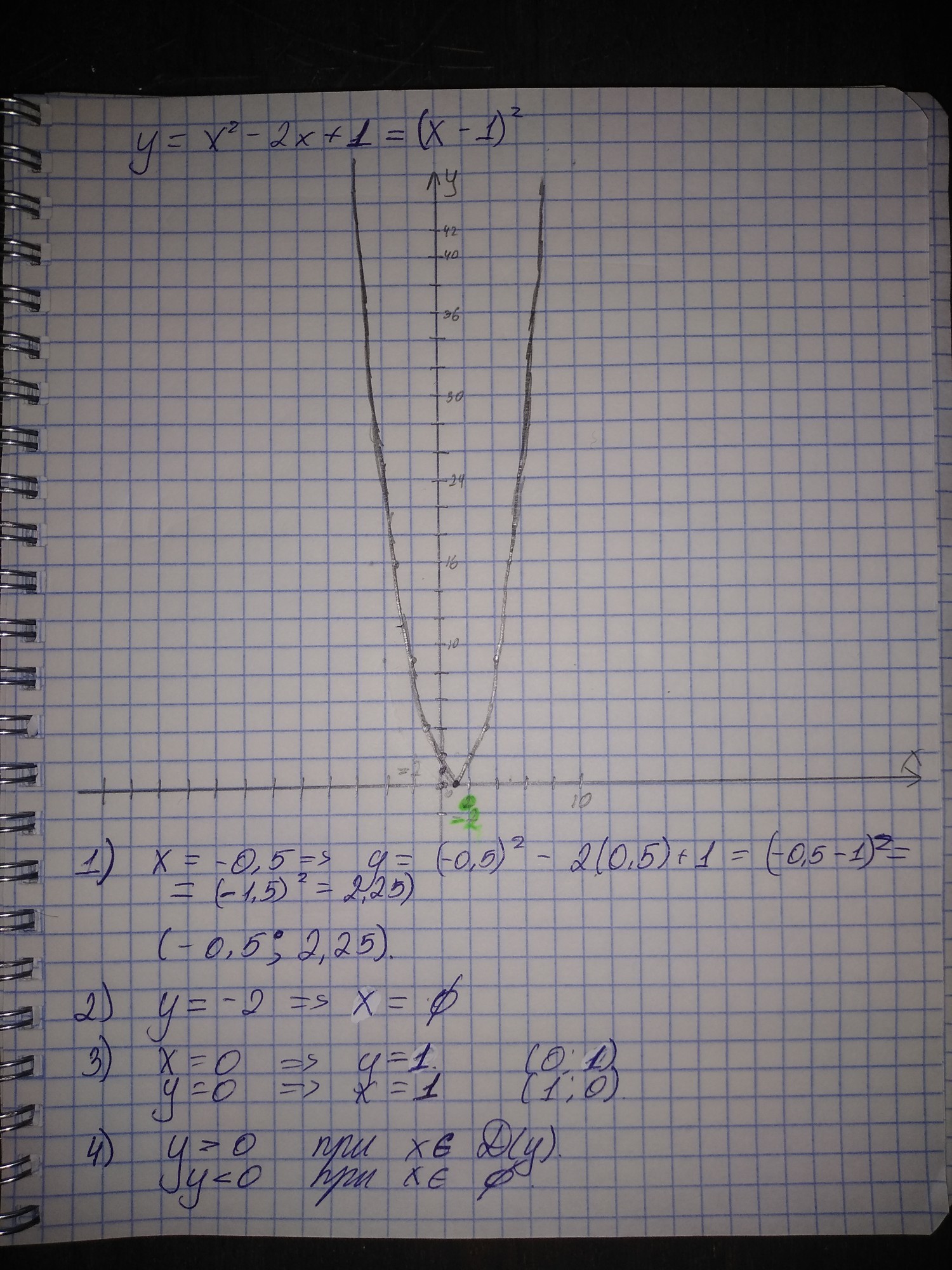 постройте график функции y=x^2-2x+1. С помощью графика найдите:1)значение y при x=-0,5