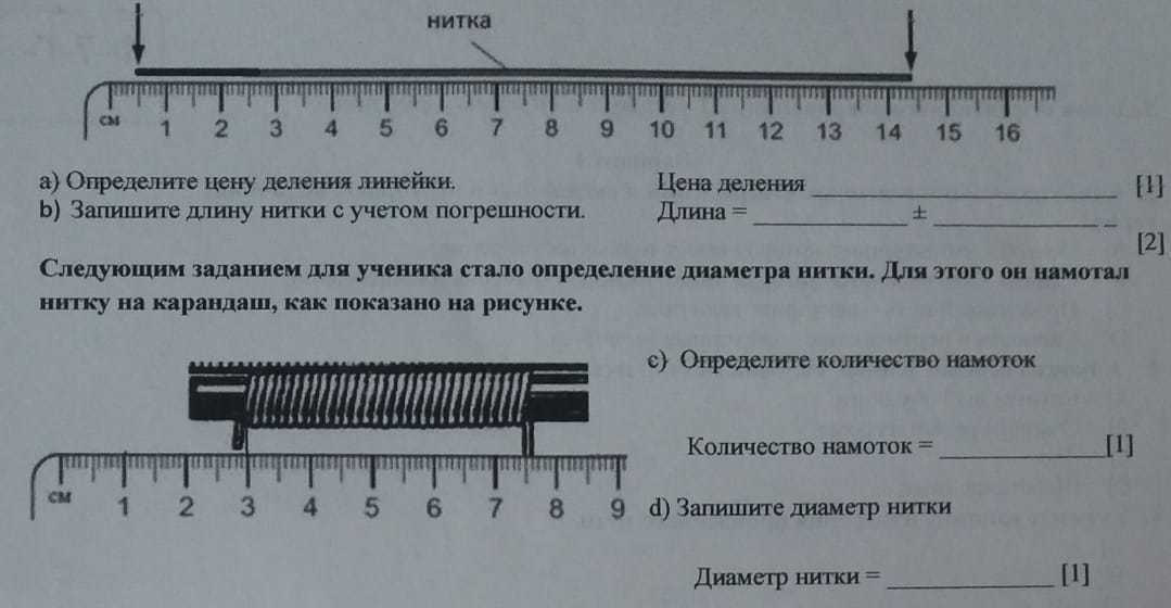 Ученику необходимо определить длину нити. Для этого он поместил нитку так,как показано на рисунке
