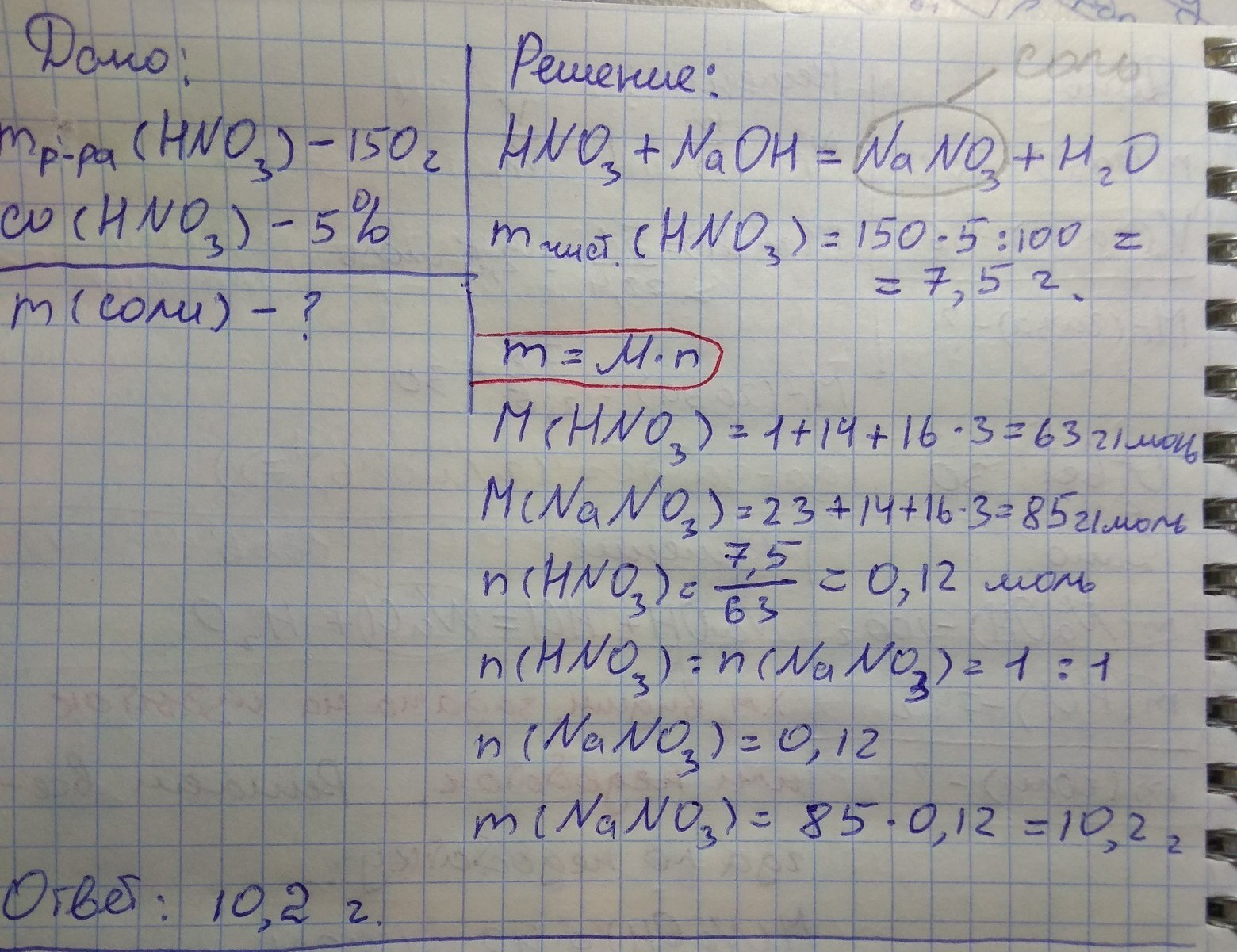 к 150г 5%ного раствора азотной кислоты прилили раствор гидроксида натрия рассчитайте массу образовавшейся соли