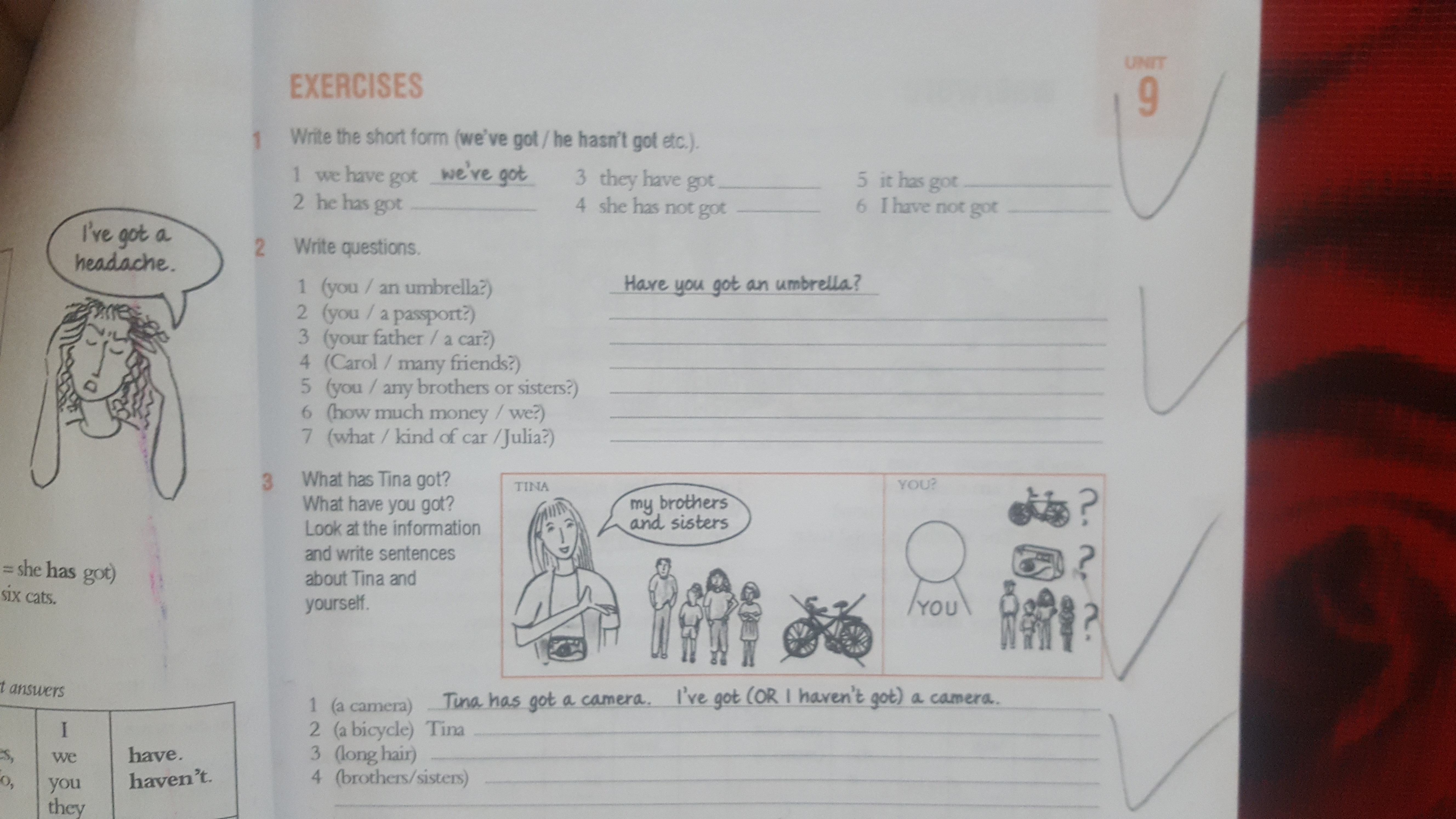 4 Tina has got brothers and sisters. I’ve got (I haven’t got) brothers and sisters.