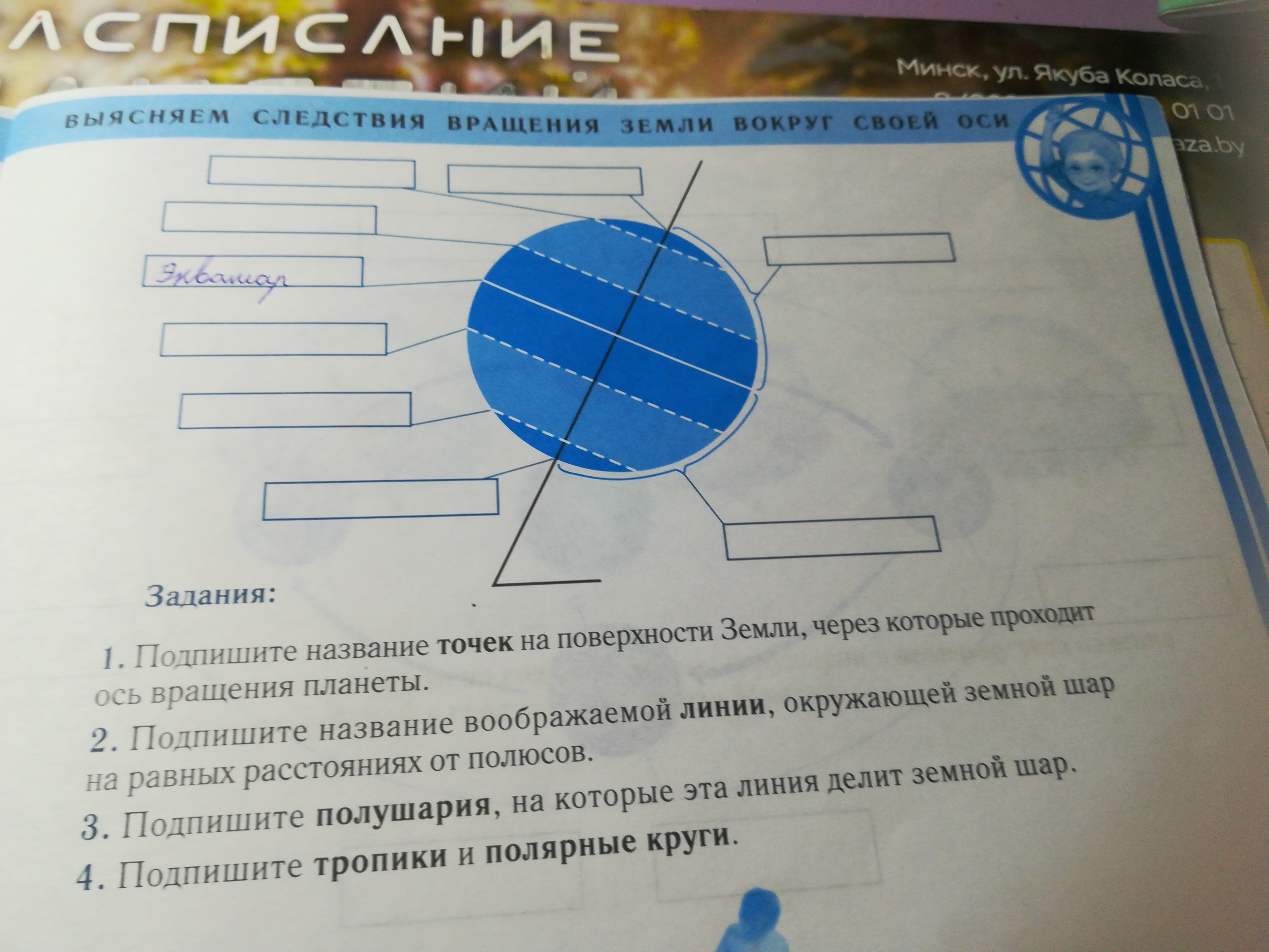 сверху вниз северный полюс, северный полярный круг,северный тропик, экватор. а дальше только с южн