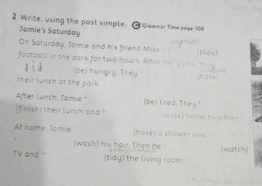 played , were , had , was , finished , walked , had , washed , watched , tidied