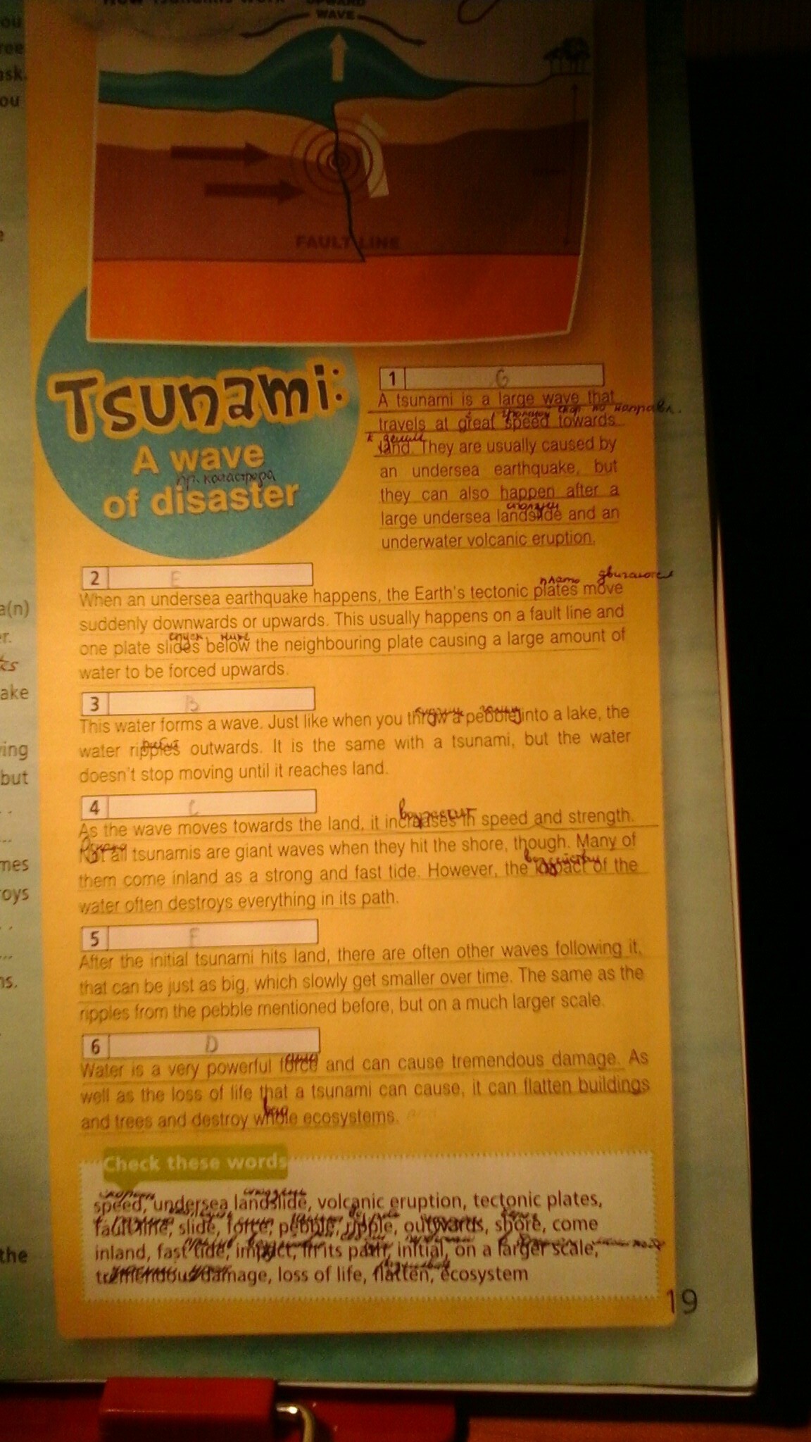 Когда происходит подводное землетрясение, тектонические плиты Земли, начинают внезапно двигаться вперёд и назад. Это обычно случается на линии разлома, когда одна плита соскальзывает на соседнюю, вызывая таким образом принудительный подъем большого количества воды.