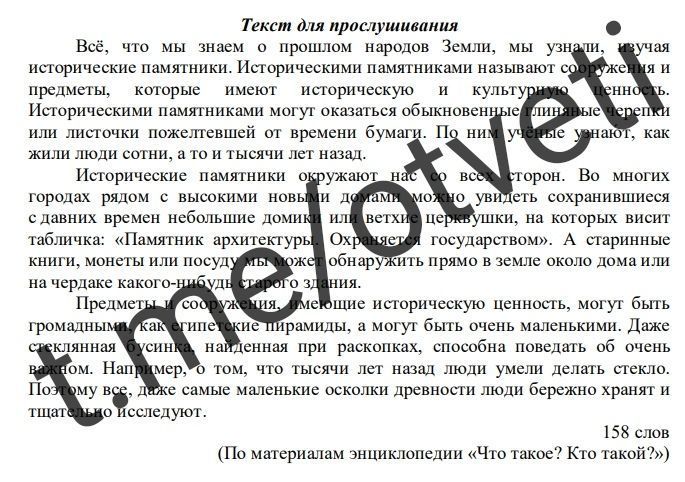 Все, что мы знаем о прошлом Земли, мы узнали ,изучая исторические памятники.Историческими памятниками называют предмет, который имеет историческую и культурную ценность Ими может оказаться листок бумаги или коры с надписью. По ним ученые определяют, как жили люди раньше.Памятники окружают нас со всех сторон. Памятники могут встречаться в разных городах и бывают разных видов. Также после сноса старого здания мы можем обнаружить разные вещи, предметы ,имеющие ценность как большую, так и маленькую. Даже стеклянная бусинка может рассказать, как в древности делали стекло. Надо хранить всё и дорожить всем.