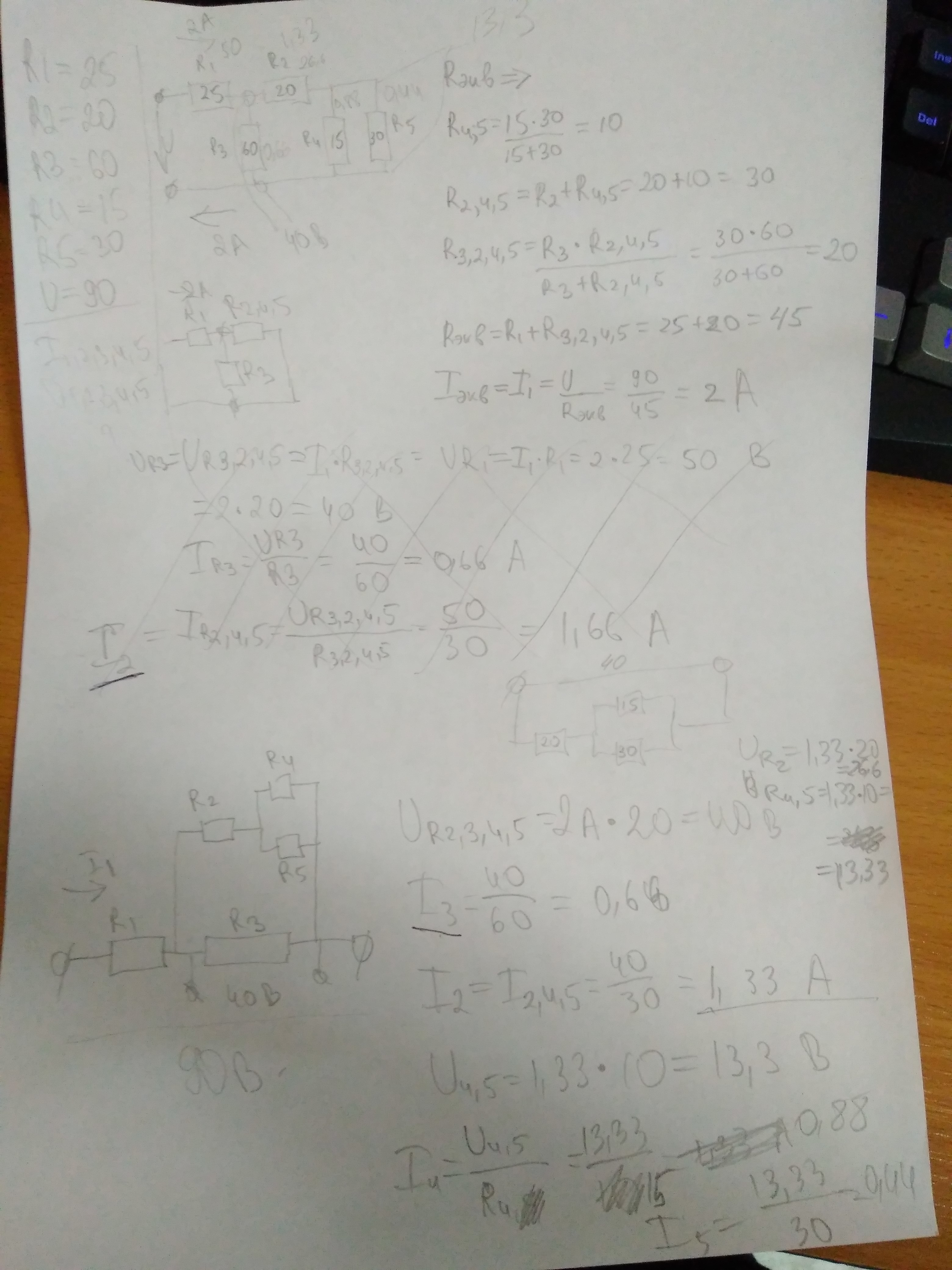 Определить токи на участках цепи и ЭДС источника питания для схемы, изб на рис. 1. Известны величины сопротивлений: R1= 4 om, R2= 6 om, R3= 50 om, R4= 100 om, R5=60, R0= 2om. Мощность, выделяемая на сопротивление R2, равна 24 вт