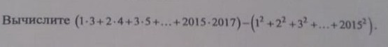 Если рассмотреть как сумму первой скобки арифметической прогрессии и второй можно заметить: что количество An членов у обоих будет одинаково, причем если объединить эти прогрессии (можем так сделать, т.к. их количество одинаковое) и тогда получаем новую арифметическую прогрессию, которая начинается с 2 и заканчивается числом 4030. Чтобы в итоге вычислить требуемую значение, используем формулу суммы арифметической прогрессии, решение приложил ниже