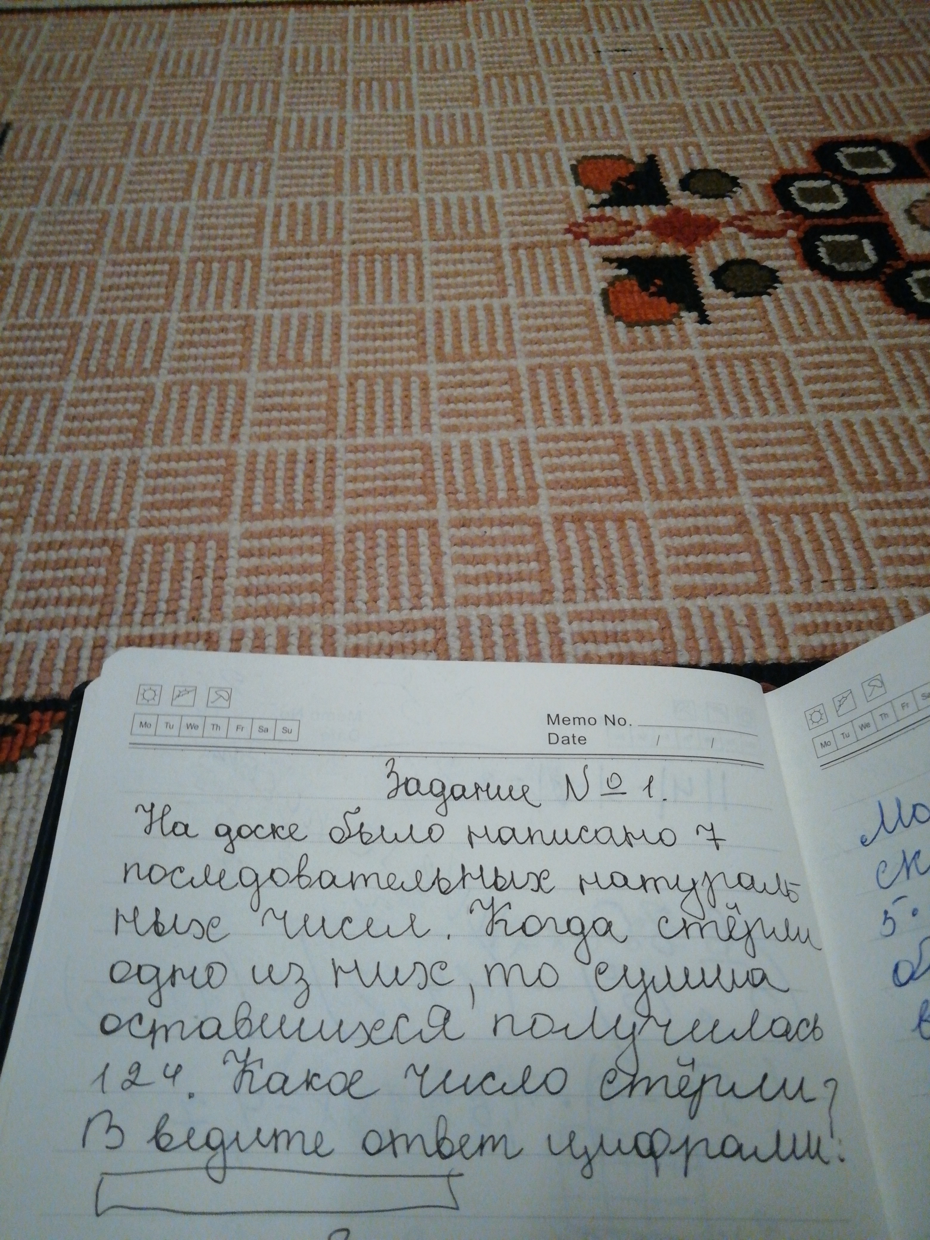 На доске было написано 7 последовательных натуральных чисел. Когда стёрли одно из них, то сумма оставшихся получилась 124. Какое число стёрли?