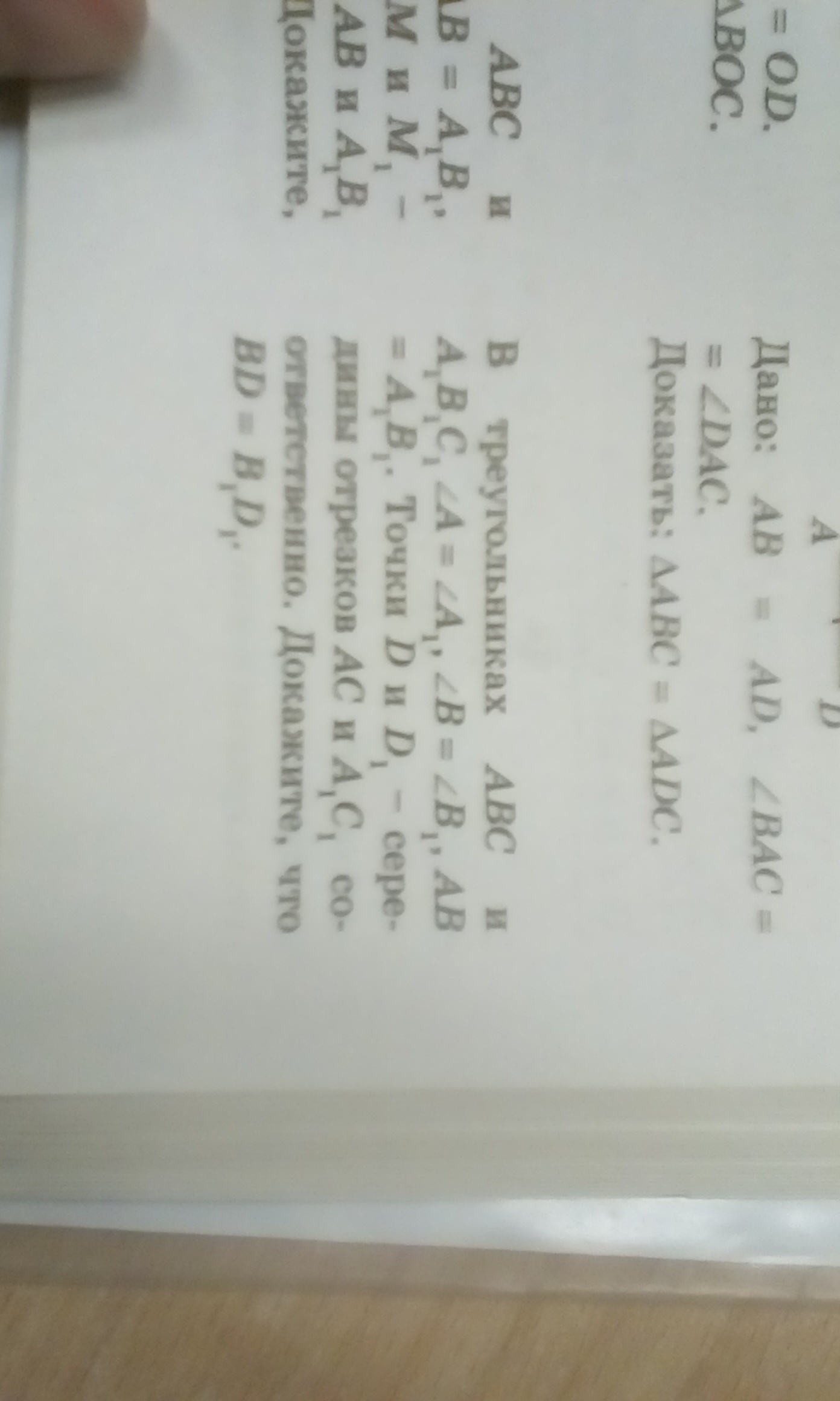 AD = A1D1 (так как это половины AC и A1C1 соответственно, которые равны между собой)